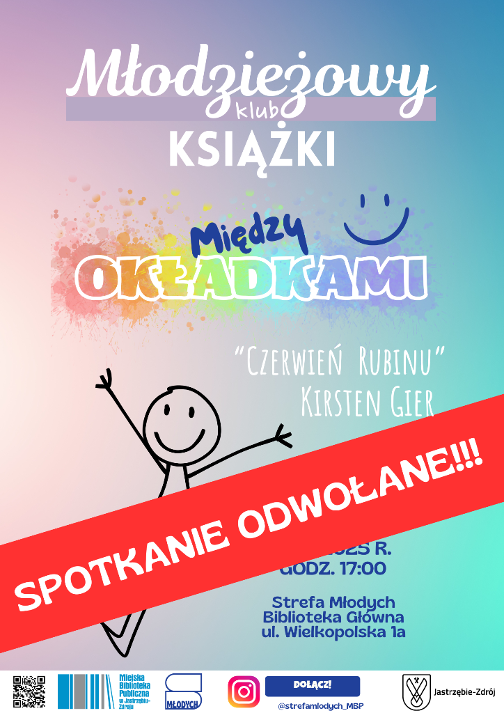 Drodzy Młodzi Czytelnicy! Jesteśmy zmuszeni odwołać spotkanie Młodzieżowego Klubu Książki, które miało się odbyć 1 października o godz. 17:00 w Strefie Młodych. O kolejnych spotkaniach będziemy Was informować na bieżąco.