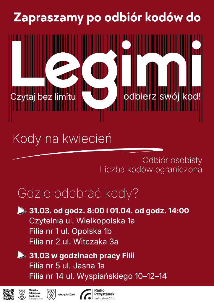 Kody do Legimi, aktywne od 1 do 30 kwietnia 2026 r., będą wydawane w dwóch turach: