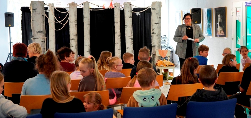 Dziś w naszej bibliotece odbyło się przedstawienie teatralne „Dobre rady Lisa Witalisa” w wykonaniu Grupa O!Teatr. Spektakl przyciągnął liczne grono młodych widzów, którzy z ogromnym zainteresowaniem śledzili przygody sprytnego lisa.