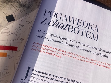 Pogawędka z chatBotem / Agnieszka Karlińska ; rozmawiała Patrycja Pustkowiak. - „Wysokie Obcasy”, 2025, nr 11, s. 84-87